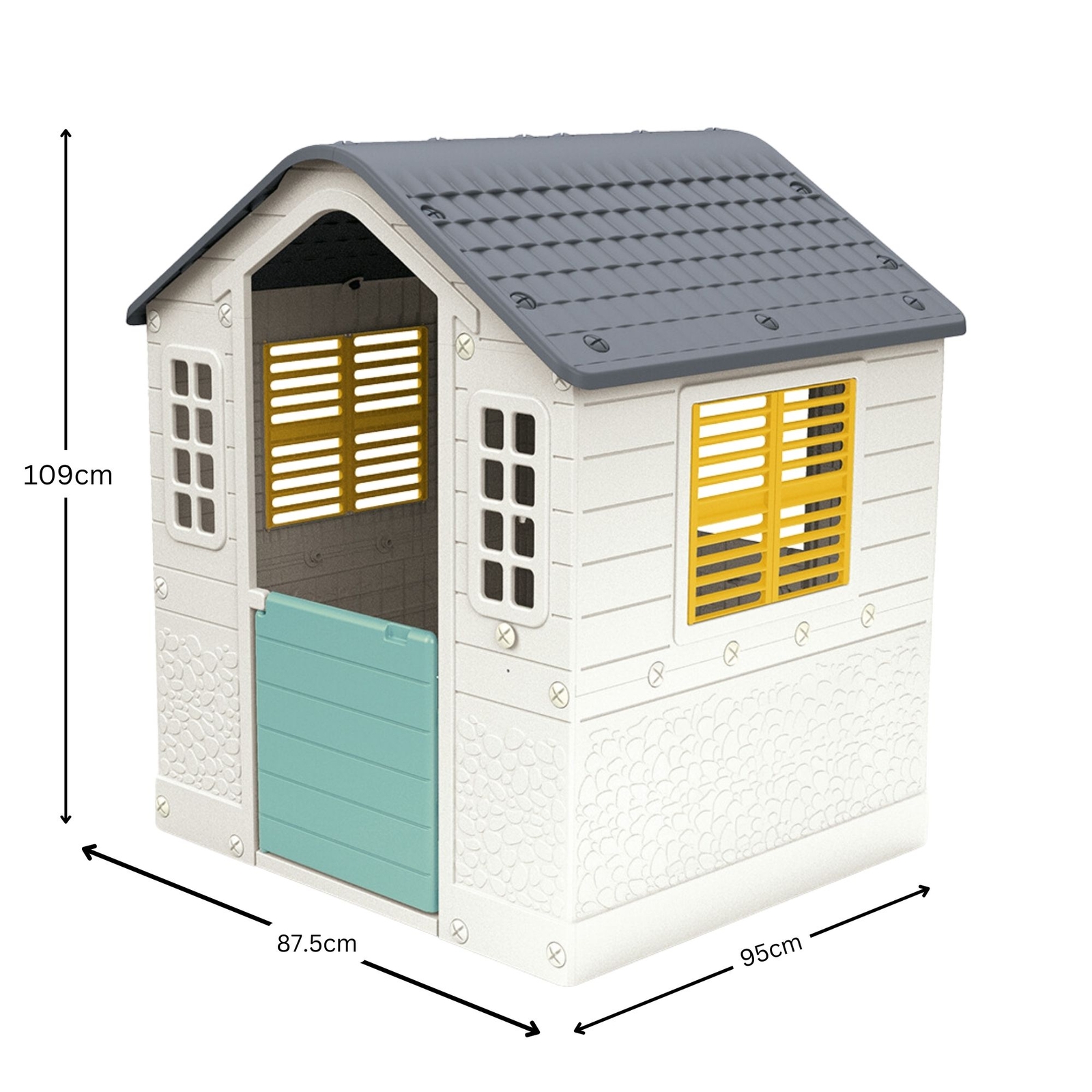 The playhouse is made from robust, child-safe plastic. It withstands outdoor weather, including sunlight and light rain. Smooth edges and a sturdy design reduce the risk of accidents. Assembly is simple and doesnβt require extra tools, making it parent-friendly.