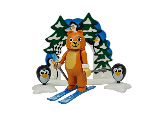 The figure shows classic Playmobil quality. Arms and legs move easily. The skis attach securely to the feet. The bear is sturdy and safe for play. Bright colors make the set visually appealing. Each piece feels durable and well made.