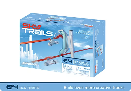 The set includes a Kick Starter mechanism, a holder attachment, three rails, and a slider, making it easy to connect into existing Sky Trails layouts. While it requires a base track such as the Playmobil Sky Trails Starter Kit to function fully, the integration is smooth and intuitive.