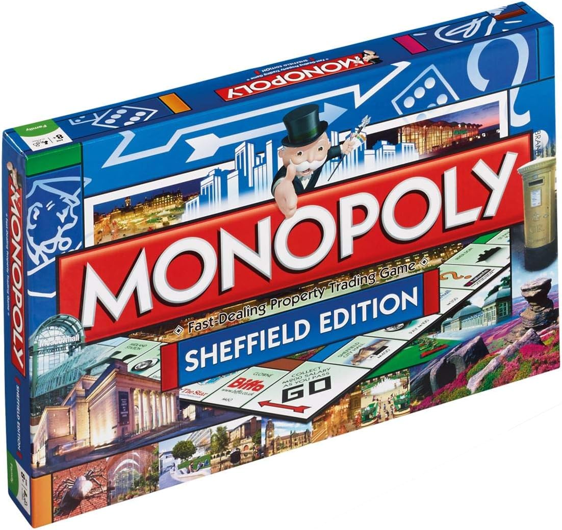 The Sheffield Monopoly Board Game is a regional edition of the classic Monopoly game that celebrates Sheffield, a city in South Yorkshire, England, known for its industrial heritage, steel production, rich cultural scene, and proximity to the Peak District. This edition replaces the traditional Monopoly properties with iconic locations and landmarks from Sheffield, offering a unique way to explore the city.