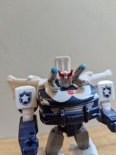 Prowl looks sharp. The figure has a clean, white body with black and blue highlights. The police decals give him an authentic law-enforcement feel. ๐ตโซ
